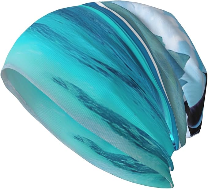 Adult Lightweight Tahiti Beach Print Knitted Hat Beanie hat Elastic Keep Warm Slouchy Headwear. Black