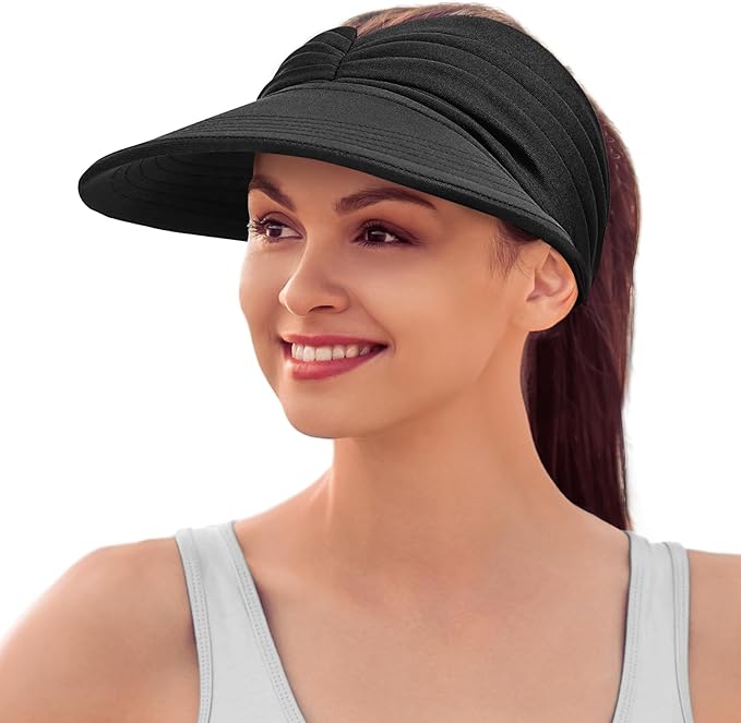 Sun Visor Hats for Women, Wide Brim Beach Ponytail Hats, UV Protection Summer Packable Foldable Topless Caps