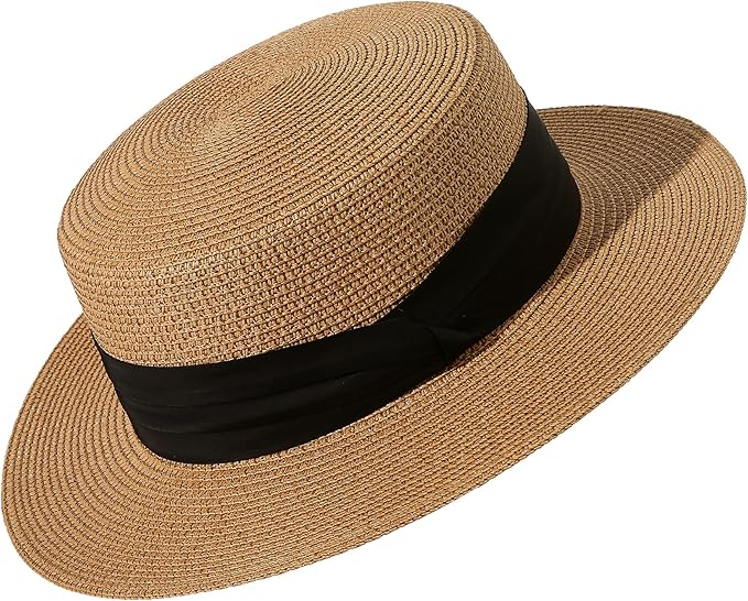 Sun Hats for Women Wide Brim Straw Boater Hat Foldable Packable Beach Hat for Summer Fit Size 6 8/7-7 1/4