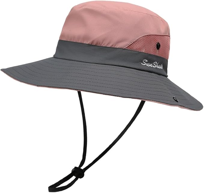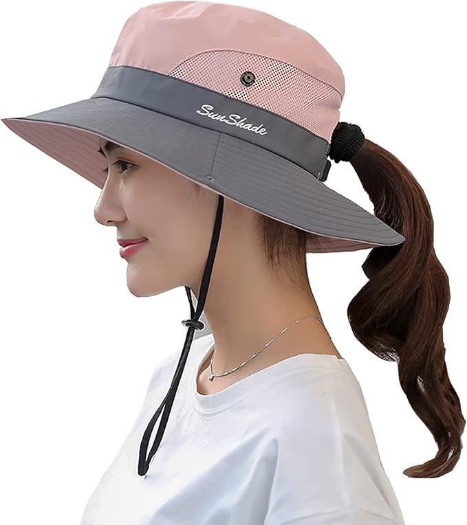 Women's Ponytail Sun Hat UV Protection Outdoor Foldable Mesh Wide-Brim Beach Summer Fishing Hat