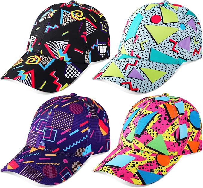 4 Pcs Neon Trucker Hat 80s 90s Vintage Baseball Caps for Men Women Retro Back to 90s Hats Adjustable Unisex Caps for Travel