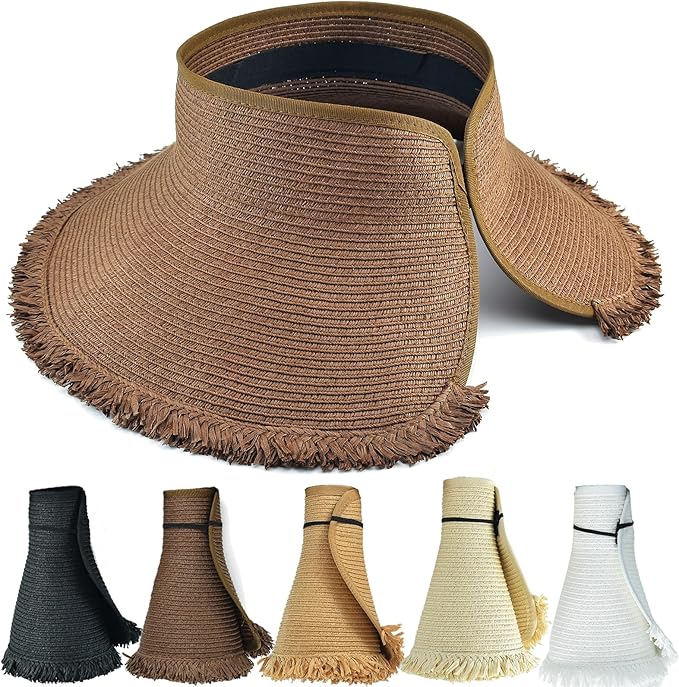 Womens Straw Sun Visor Hat Foldable Beach Visors Hat for Women