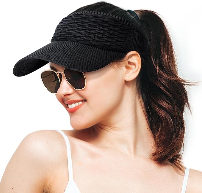 Sun Visor Hats for Women, Wide Brim Sun Hats for Women UV Protection, Ponytail Quick Drying Knitted Running Visors for Women