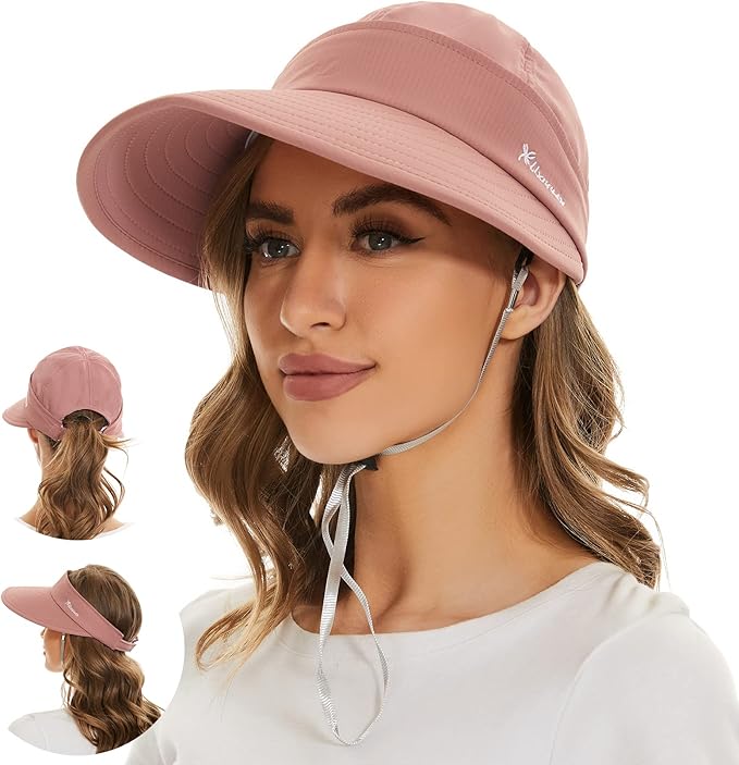 Sun Hats for Women UV Protection Wide Brim 2 in 1 Zip-Off Visor Summer Beach Hat Womens Packable Golf Hat