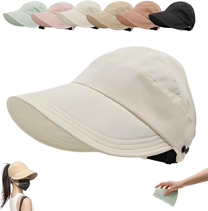 Sun Visor Hats for Women, Wide Brim Beach Ponytail Hats, UV Protection Summer Packable Foldable Topless Caps