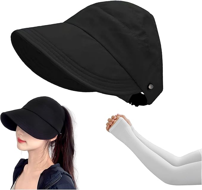 ]Women Visor Ponytail Sun Hat Wide Brim Hat Packable Visor Outdoor Uv Protection Empty Top