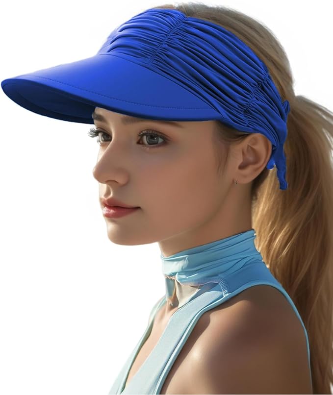 Womens Visor Sun Hat Wide Brim Cool Adjustable Summer UV Protection Visor Hat for Beach Sport Golf Travel Outdoor