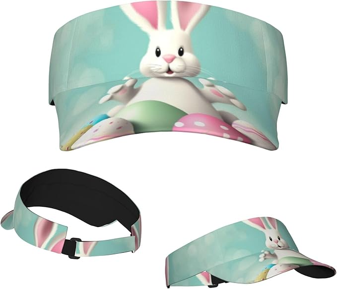 Happy Easter Eggs Bunny Tail Sun Visor Hats Women Men Sport Empty Top Baseball Cap Adjustable Sunscreen Visor Cap Black