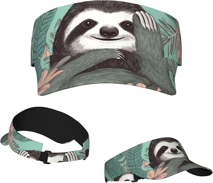 Sunscreen Visor Hats for Women Men Adjustable Empty Top Baseball Cap Animal Sloth Mint Green Sun Cap Sport Tennis Visor