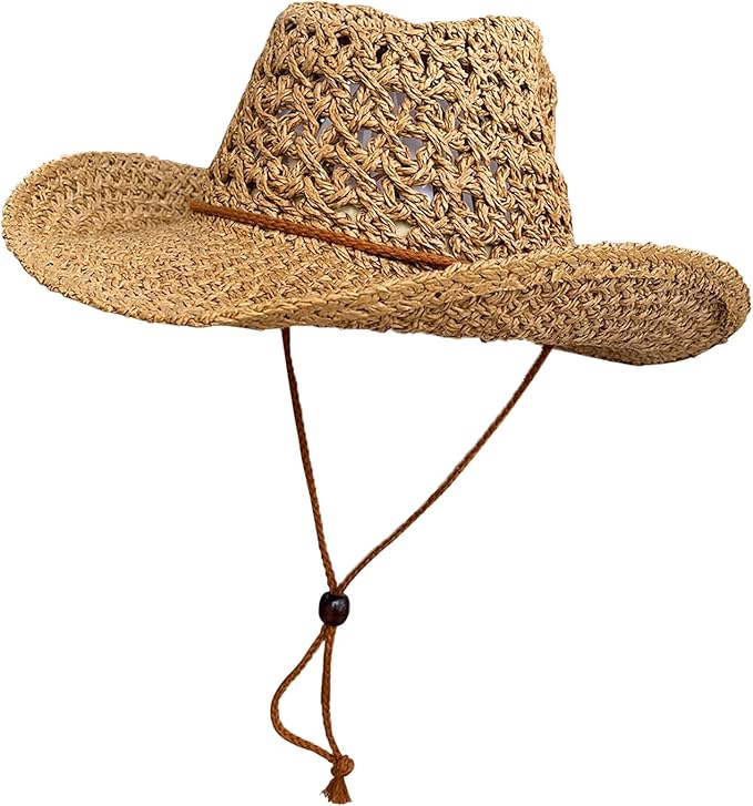 Womens Straw Cowboy Hat with Strip Foldable Wide Brim Summer Sun Hats for Men Travel Vacation Lightweight Beach Cowgirl Hat